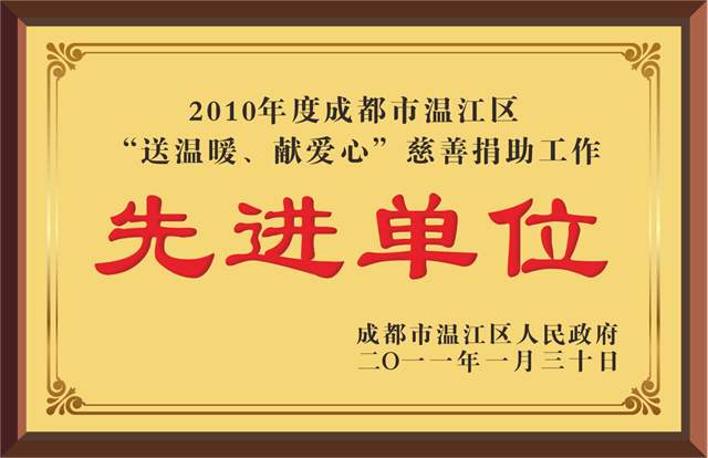 2010年度成都市温江区“送温暖、献爱心”慈善捐助工作 先进单位